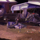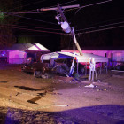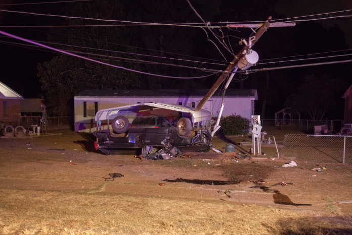 The accident occurred just west of Kings Highway on U.S. 67. The vehicle came to rest upside down breaking a utility pole and leaving a powerline hanging low over the highway.