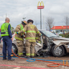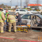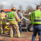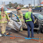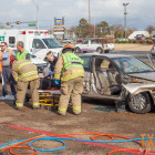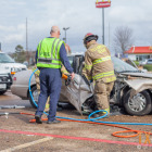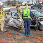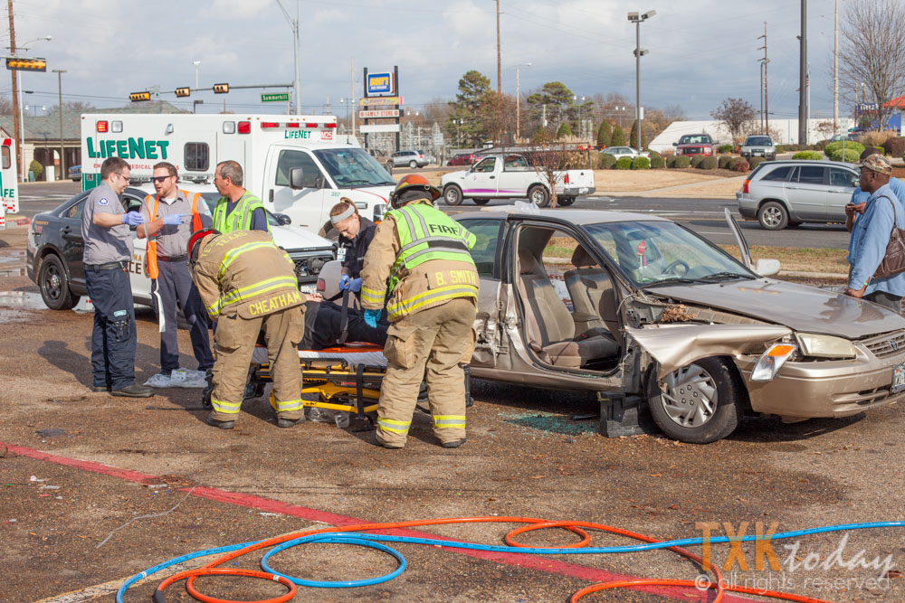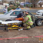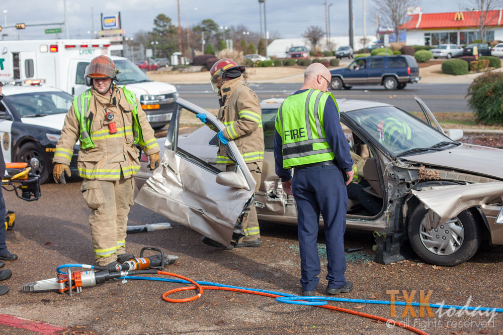 1:30 p.m. Friday | A two car accident trapped one person and sent at least two more to a local hospital Friday afternoon.