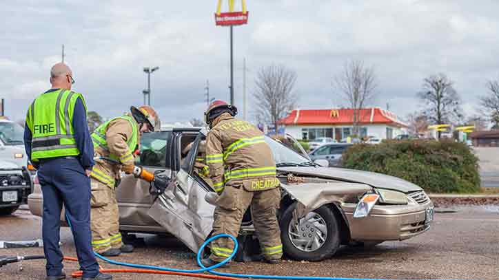 Firefighters had to remove the door with hydraulic rescue tools to remove the passenger from vehicle.