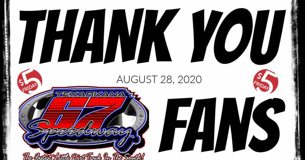 To all of our GREAT Fans who help support Texarkana 67 Speedway, this week will be $5 Friday in the grandstands. So, Load up the car with family, friends, and whoever else you can find on the way to the track and pack the house!
