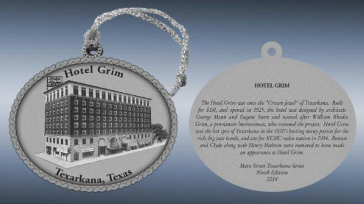 December 23, 2014 | The 2014 Main Street Christmas Ornament is now available and features the historic Hotel Grim in downtown Texarkana.