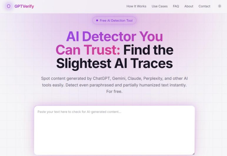 GPTVerify has one of the clearest student-friendly pitches of the group. No account is required for trial, and there is no claim that any detector is infallible. A tool that admits its limits is often easier to trust than one that acts like a machine oracle.