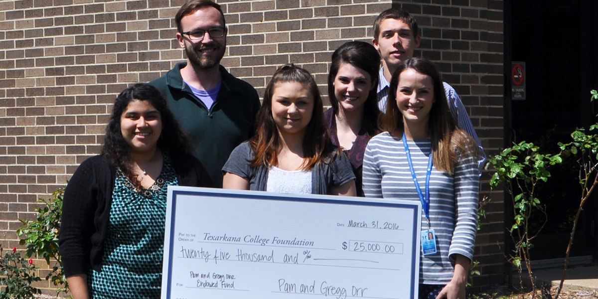 On Friday, April 1st, Pam and Gregg Orr donated $25,000 to establish a new endowed fund to support Texarkana College’s Presidential Scholarship program. This scholarship program was introduced in March 2015 to reward hard-working students from our region who wish to pursue their goal of obtaining a higher education credential. Because the gift was given as an endowment, students will receive scholarships from this fund in perpetuity.